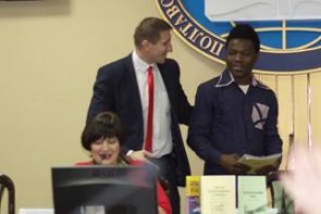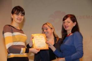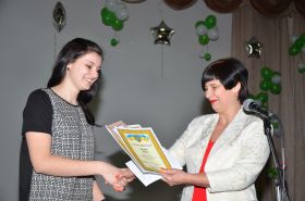 Нагородження переможця в конкурсі стіннівок відбулося в актовому залі під час КВК. Цінні подарунки вручила завідувач кафедри бухгалтерського обліку та аудиту, к.е.н., проф. Верига Ю.А.